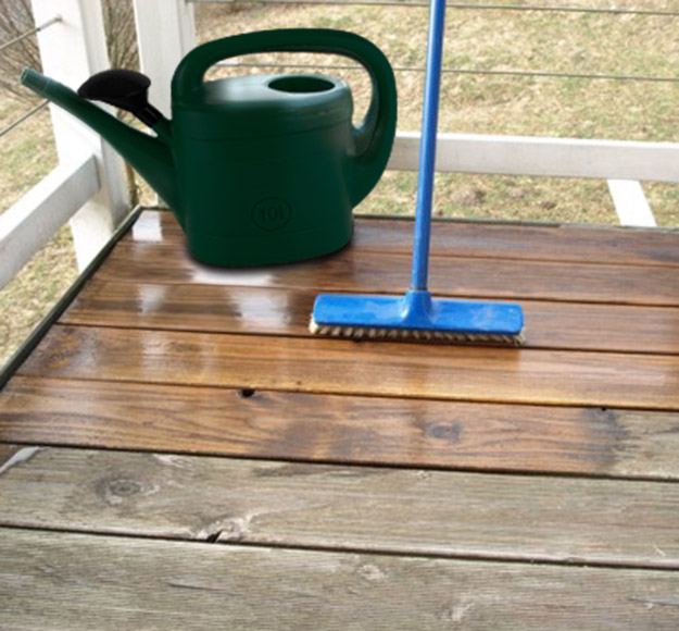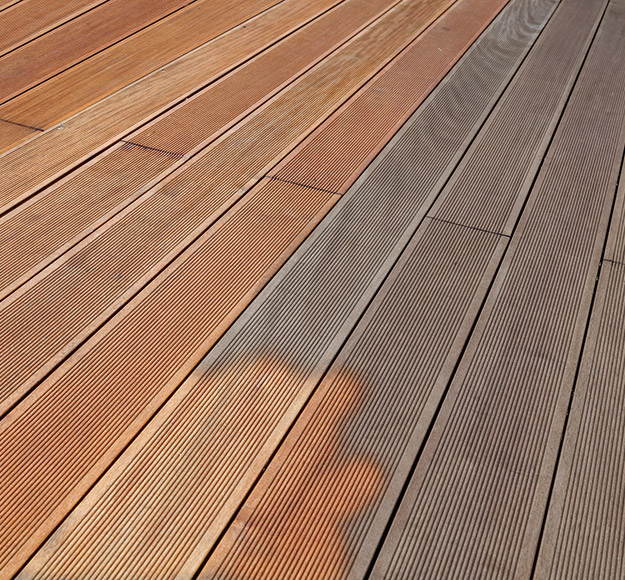 Intensive Reinigung von vergrautem Holz